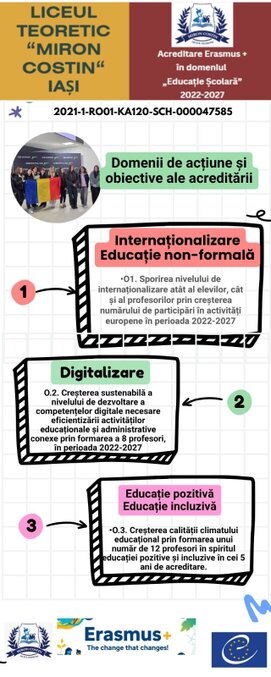 LICEUL TEORETIC „MIRON COSTIN” IAȘI, desfășoară în cadrul proiectului Accredited projects for mobility of learners and staff in school education 2022-1-RO01-KA121-SCH-000065187 în parteneriatul „FUTURE LEARNING SPACES”, cu Germania, Spania, Finlanda și Italia mobilitatea C2 - Iași, România